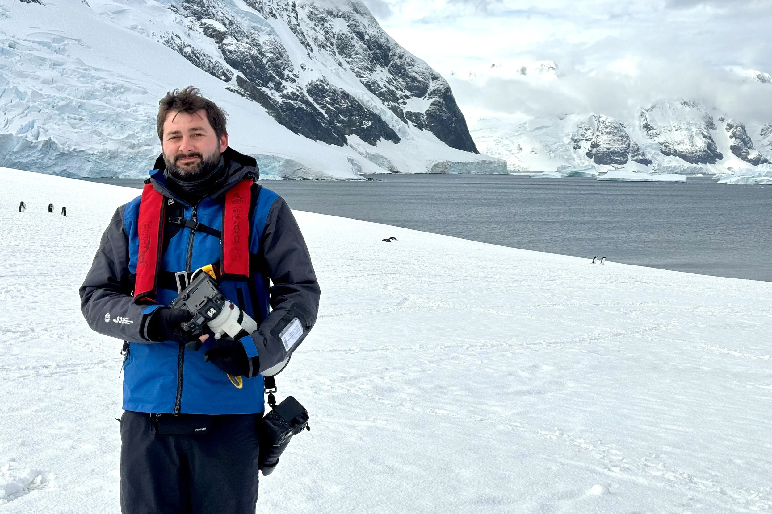 Me standing near Port Charcot with two canon R5 kits: a 100-500mm long lens and a 24-70mm wide lens. © GREG PURNELL